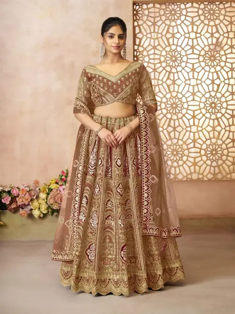 Embroidered Semi Stitched Lehenga Choli (Brown)